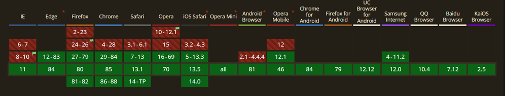 Kérjük, a mellékelten látható táblázat alapján legyenek szívesek ellenőrizni, hogy piros színnel jelölt böngésző verziót használnak-e, amennyiben igen, szíveskedjenek frissíteni a böngészőt egy támogatott verzióra (zöld színű verziószámok).